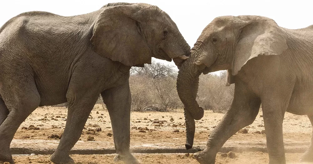 Male African and Asiatic elephants are known to show signs of affection towards each other, including touching mouths (kissing), placing their trunks in each other’s mouths, and intertwining their trunks. Homosexual relations have also been observed between female elephants in captivity.