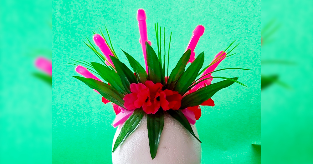 From possibly the most colourful person in Ireland, Taryn de Vere has created this wonderful art for your head. The glorious crown of erect cocks, framed with pink flowers and green leaves is available here. Taryn also sells a wide range of amazing pins and brooches starting at €2.50.