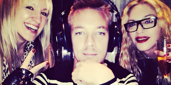Diplo has joined Madonna for three weeks worth of studio sessions so far, during which the pair wrote seven songs together, including a track titled, ‘Bitch, I’m Madonna’. The producer says “probably four tracks” will make the final cut, and as for feeling pressured he told Digital Spy “I do not usually feel pressured to write hits, but when it’s an artist of this calibre, it’s obvious that I want to push the boundaries a little bit further and surpass myself. He has also recruited Ariel Rechtshaid (Kylie, No Doubt) and MNEK to write verses for “a song Madonna really likes”. Speaking to Billboard magazine he told, “One song is super weird. Late one night in the studio we got a little bit drunk and she improvised a little hook and we made a song out of it. I think it’s going to be a breakthrough if she can manage to get everything together and get it out properly”. For those curious, Madonna’s drink of choice was Rosé. The late Christian Falk (Robyn, Neneh Cherry) also told a Swedish publication that he joined Diplo in the “fruitful” sessions in which Madonna was “very engaged”.