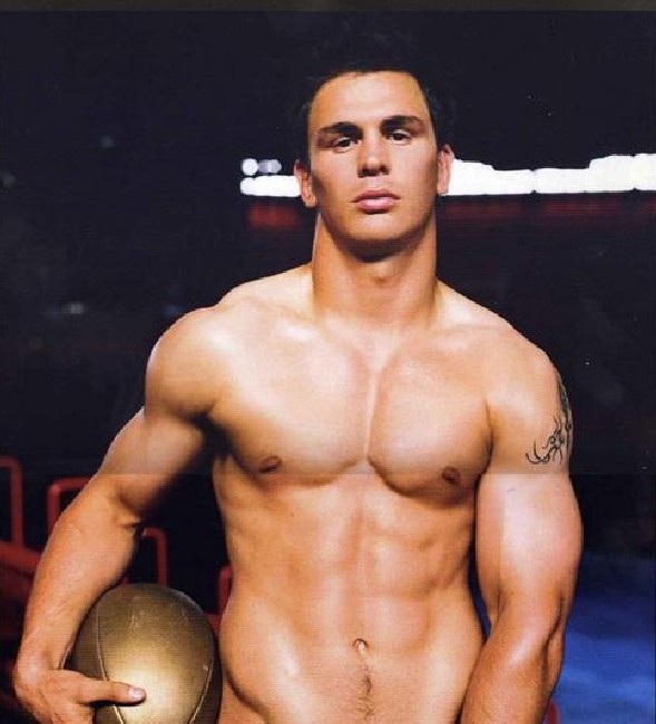 The lovely Geoffrey Messina is familiar to the gay community due to his tendency to find himself sans clothes on the Dieux du Stade calendar series since 2005, but he’s also quite a prolific rugby player-playing centre for Francais Paris, having previously earned the title ‘Champion de France’ in 2007. Most importantly though, 32 year-old Messina is a 13 stone slab of lean French beef and he’s got no plans to put it away any time soon, apparently.