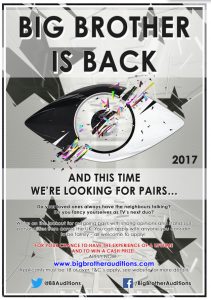 From the press release: ‘Big Brother 2017 are on the lookout for outgoing pairs with strong opinions and stand-out personalities from across the UK! You can apply with anyone you consider to be family.