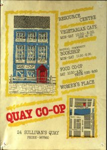 The Quay Co-op opened on Sullivan’s Quay on 1st May 1982 and, particularly in the 1980’s, was a hive of radical political activism. It provided an important base for the development of Cork’s LGBTQ+ community and a base for social change activism.