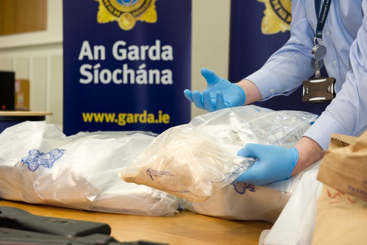 A member of the Gardaí displays some seized drugs (not Truvada)