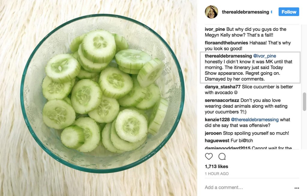 “Honestly I didn’t know it was MK until that morning,” responded Messing. “The itinerary just said Today Show appearance. Regret going on. Dismayed by her comments.”