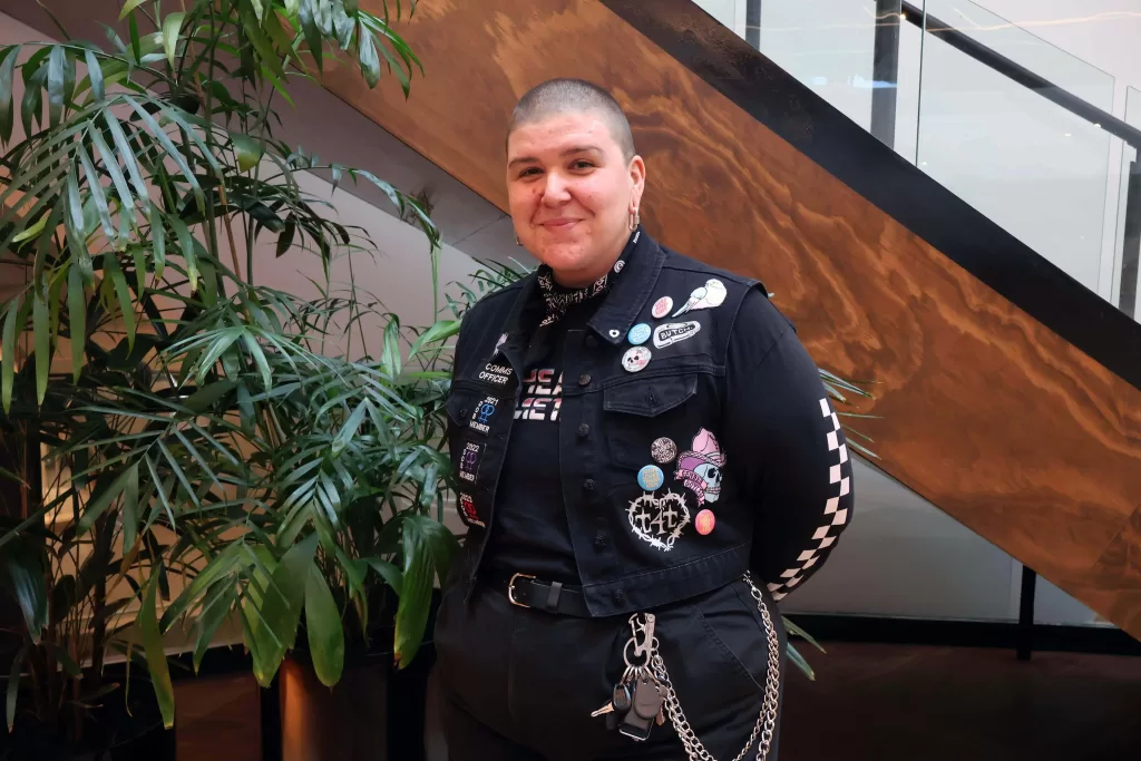 Kieran first discovered Dykes on Bikes while attending Mardi Gras on Gadigal Land in Sydney, where they grew up. They remember seeing all of the “fierce lesbians” leading the front of the Pride parade, sharing: “I was femme at the time and was in awe, seeing all these gorgeous Butches riding past – and realised that it was also an option for me and how I identified. Ten years later, I am a proud butch, shaved head and all!”