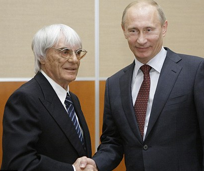 The 83 year-old Formula One mogul has a business relationship with Putin. The pair met in Sochi last year to assess construction progress ahead of Russia’s first grand prix.