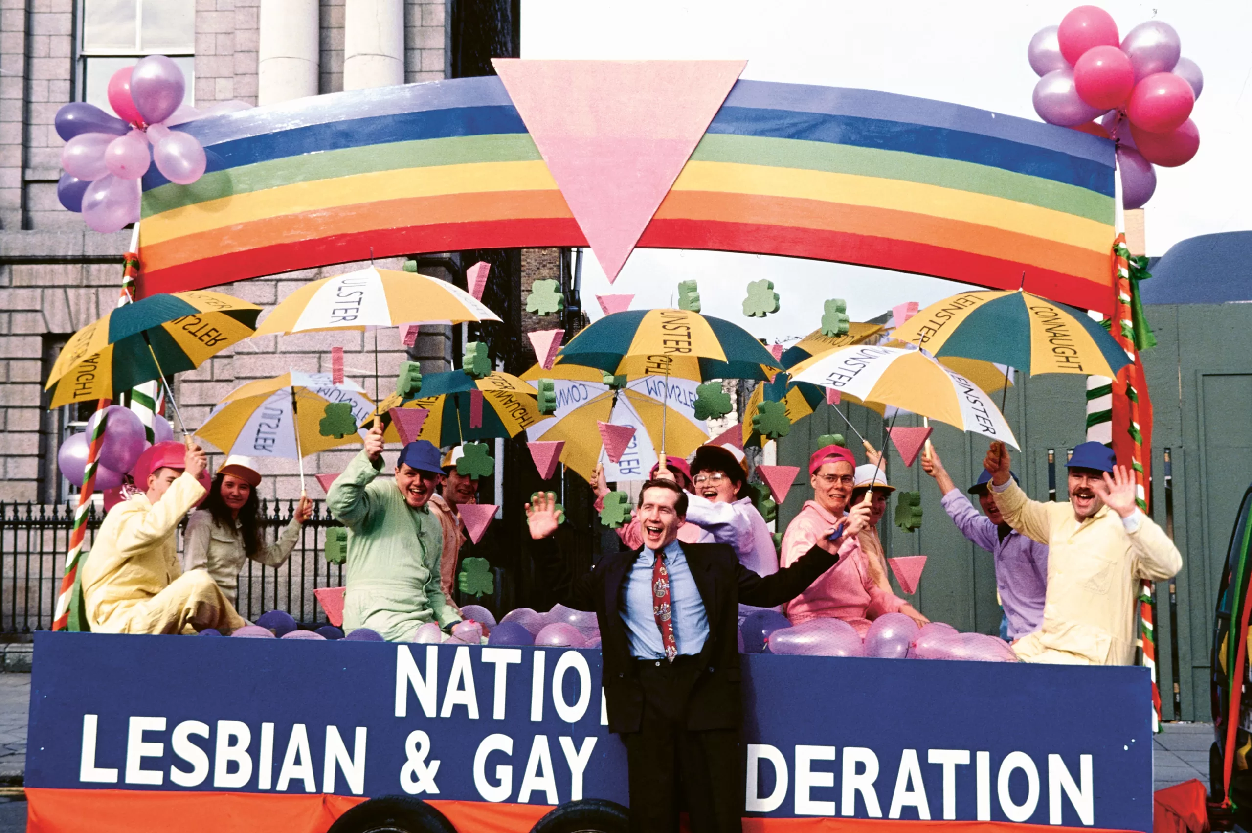 Image from the Irish Queer Archives shows the NXF parade float