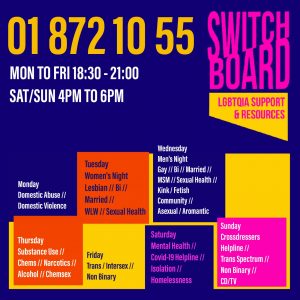 Christopher from The Switchboard shared, “Although we are happy to take any calls on any day of the week, where it’s possible we encourage people to call on the dedicated night and you will find a volunteer with extra training or a background in that area willing to help however they can.”