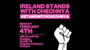 This Monday, February 4th at 6.30pm, the Irish LGBT+ community will protest and stand in solidarity with our LGBT+ family in Chechnya outside the Russian Embassy, located at 184-186 Orwell Road, Rathgar, Dublin 14. We are calling on the Irish government to officially respond to the human rights violations being perpetrated in the region.