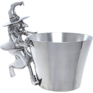 Large Resin Pumpkin in Vertical Black and White Stripes €6.99| Small Black Cake Forks Set €9.99| Black Wine Glasses (set of 4) €13.99| Silver Cage candle Holder €22.99| Clear Glass Skull €10.99| Silver Tone Nickel Witch Ice Bucket €46.99| White Plaster Pumpkin €8.99