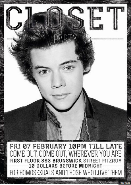 The Australian gay club night, Closet Party may be taking a sly dig at Styles suggesting that he is in the closet.