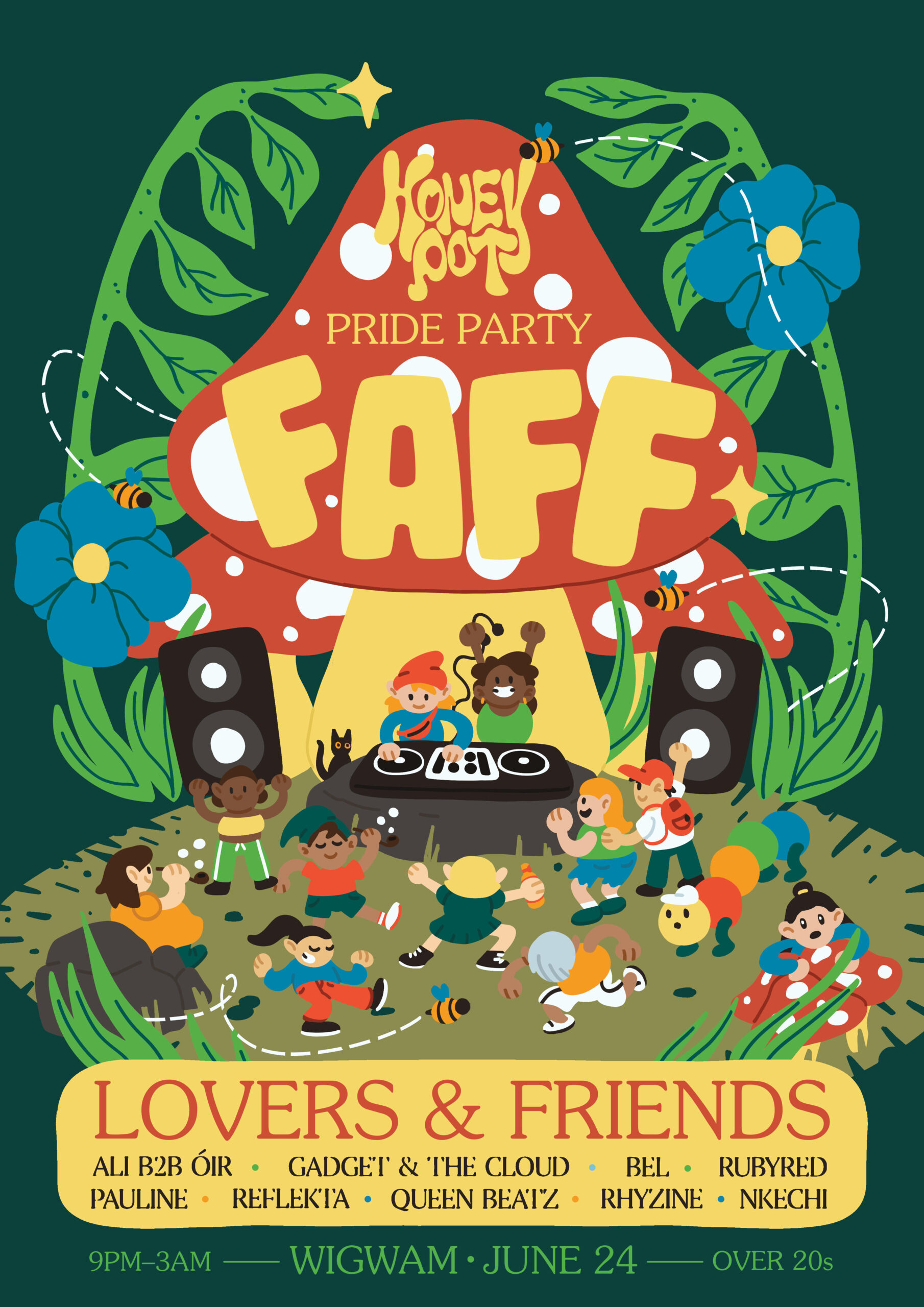 As part of its ethos, HONEYPOT hosts female, trans, and non-binary artists and DJs. Much to the excitement of many partygoers, organisers have called in an extra special headliner for the Pride party, London-based duo and Big Dyke Energy residents FAFF. The DJ tag-team will land in Dublin, having previously taken over major events, including Field Maneuvers, FOLD and Waterworks Festival.