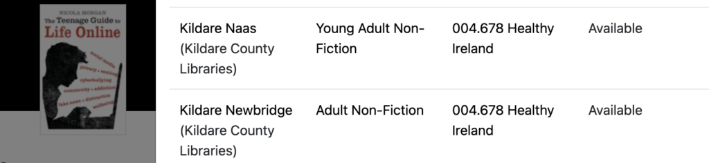 The Kildare Press Office told us, “All books included on the Healthy Ireland [list]…are catalogued as adult non-fiction and shelved together in Kildare Libraries under the Healthy Ireland branding.” However, the official Healthy Ireland website specifies that its collection includes books for children and young adults, and over 70 libraries list the book as Young Adult within the Healthy Ireland collection.