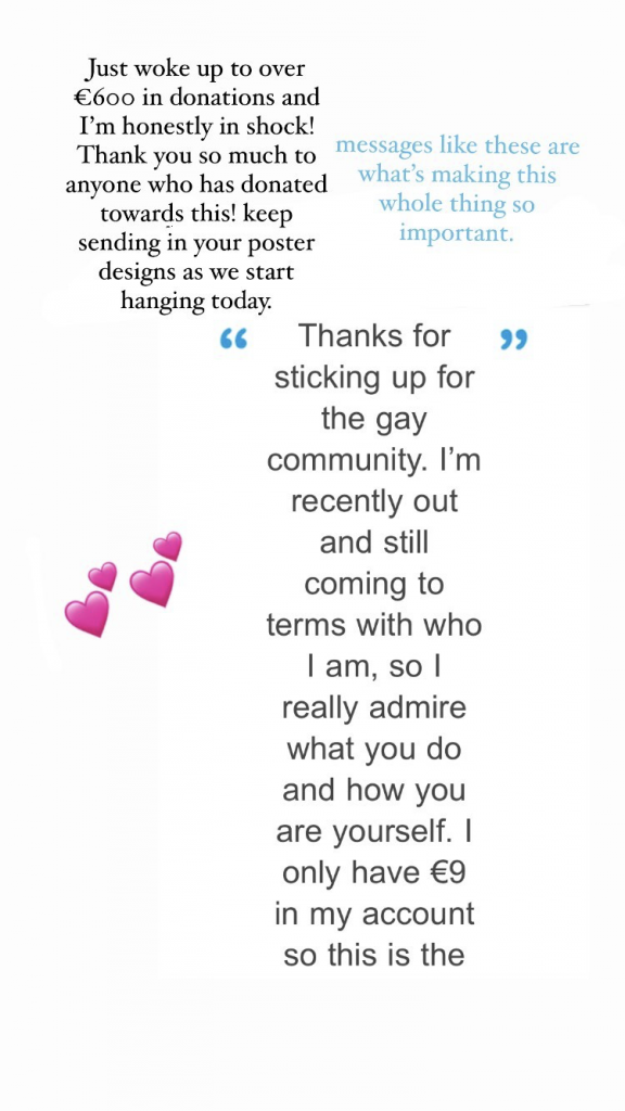 “It’s a reaction to that. To try and post as many posters of queer joy and queer solidarity. To showcase that we won’t stand for that kind of thing and that we are united in our queerness.”