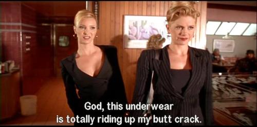 In the original film, the two actresses played a pair 28-year-old best friends who had moved from Tucson, Arizona to LA in hopes of creating impressive new lives, after enduring torture from the popular crowd at school. When they fail to reach their goals including “bagging (rich) boyfriends, losing weight and getting better jobs”, the sassy but superficial pair are forced to invent stories of fake careers – “inventing post-its” – to impress their formerly dismissive classmates at their impending high school reunion. Anyway, it’s totally classic quote-heavy, like this one:
