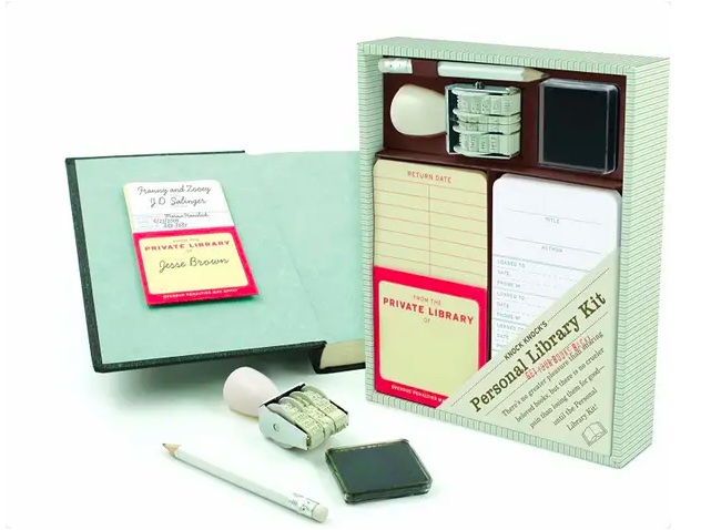 For all the Book Dragons out there who get very nervous when someone borrows a book from you–here is the thing to help you keep track: a Personal Library Kit. It even comes with checkout cards and a date stamp to help you note your beloved book collection. Buy it here.