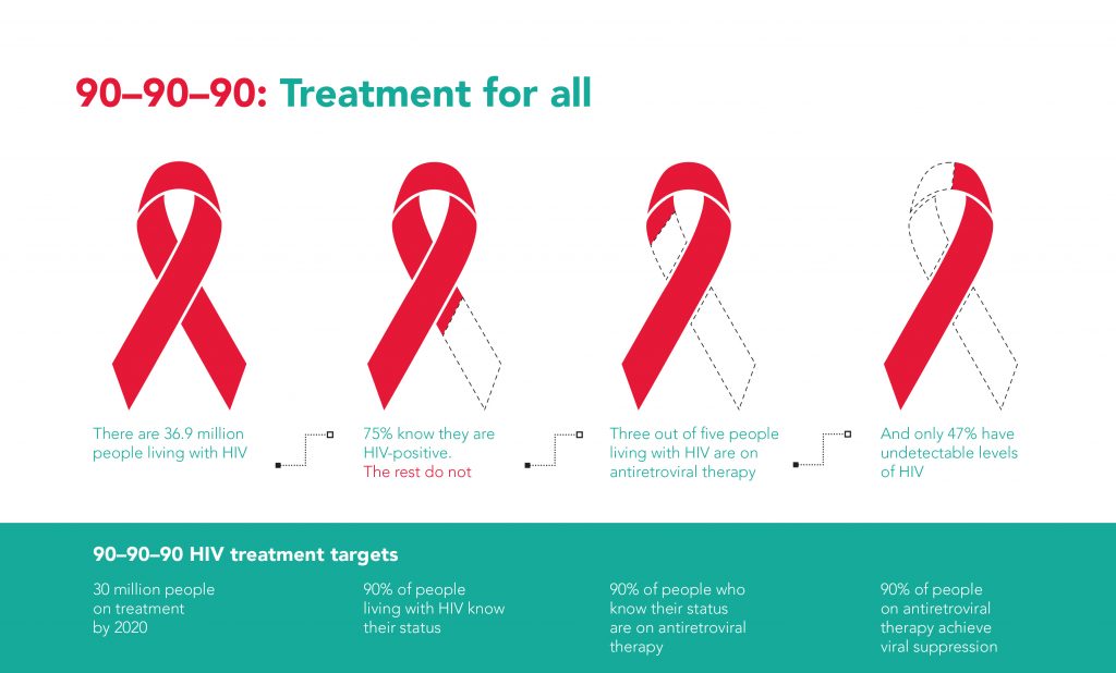 “By 2020, 90% of all people living with HIV will know their HIV status. By 2020, 90% of all people with diagnosed HIV infection will receive sustained antiretroviral therapy. By 2020, 90% of all people receiving antiretroviral therapy will have viral suppression.”