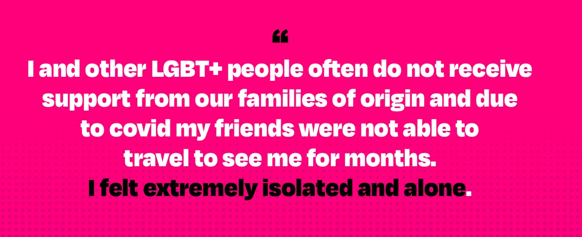 The LGBTQ+ community rely on community spaces, social connections, and the ability to take pride in their identities, together. The community has suffered so many different forms of loss throughout this pandemic, and for many, it is difficult to see the end in sight.