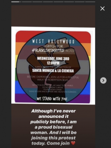Lili Reinhart shared the poster with her 23 million Instagram followers accompanied by the text, “Although I’ve never announced it before, I am a proud bisexual woman. And I will be joining this protest today. Come join.”