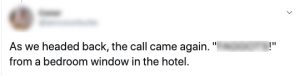 However, upon leaving the hotel, the man was again subjected to homophobic insults being shouted out the window of the same room.