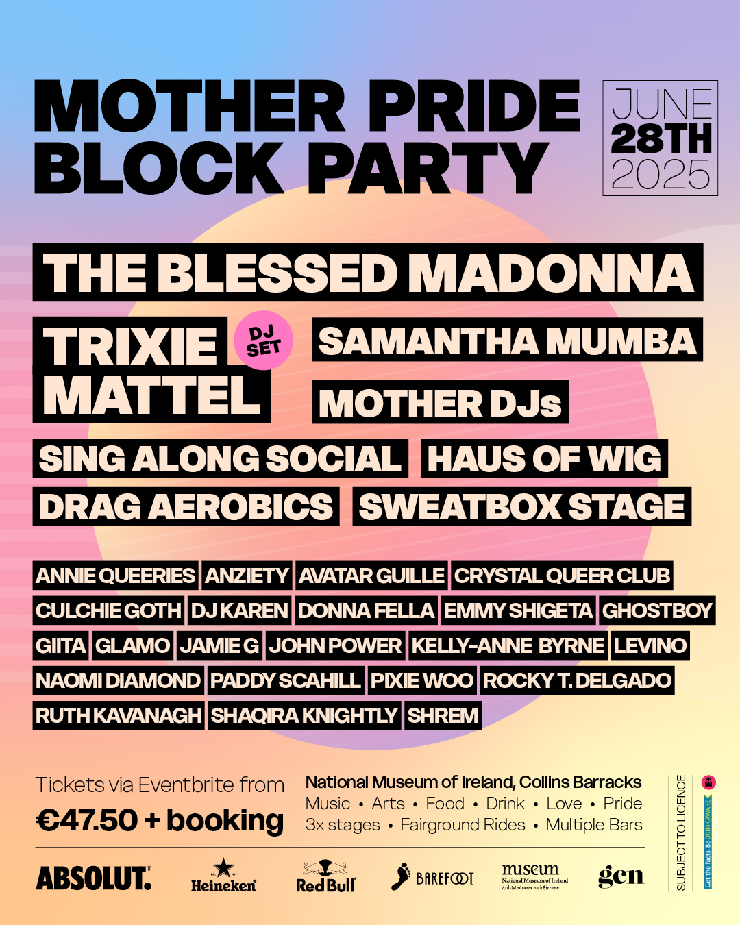 Announcing this incredible event, Mother co-founder Cormac Cashman said: “Pride 2025 isn’t just another party — it’s a landmark moment. We’re celebrating a decade of Marriage Equality and Gender Recognition in Ireland, and we’re doing it the way our community knows best: loud, proud, and together on the dancefloor. Pride is still protest, still joy, still resistance — and it’s never meant more.”