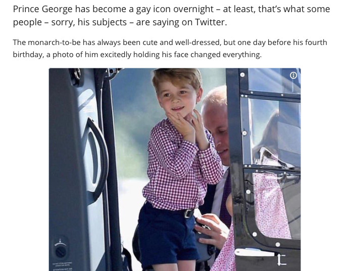 The article – entitled ‘People think Prince George looks fabulous in this photo’ appeared on the UK-based LGBT+ site last week, following the royals’ visit to Germany. The article focused on the online reaction to a series of press photos of the 4 year-old during his German trip.
