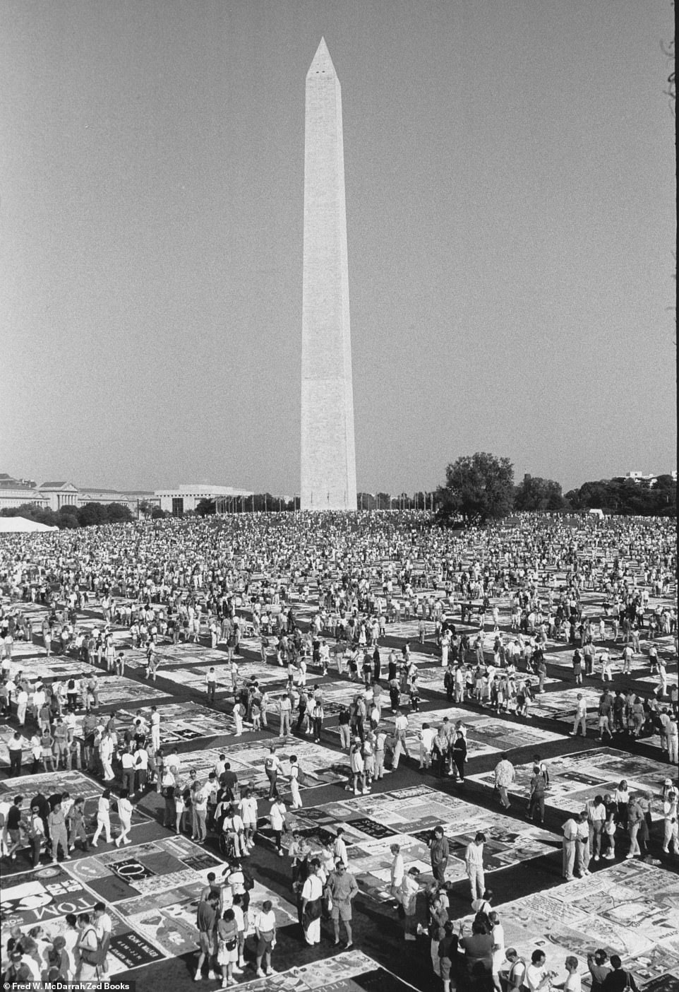 In 1993, hundreds of quilts were laid out in front of the Washington Monument. Each quilt was made up of various panels sown in memory of someone who had lost their life due to the AIDS crisis.