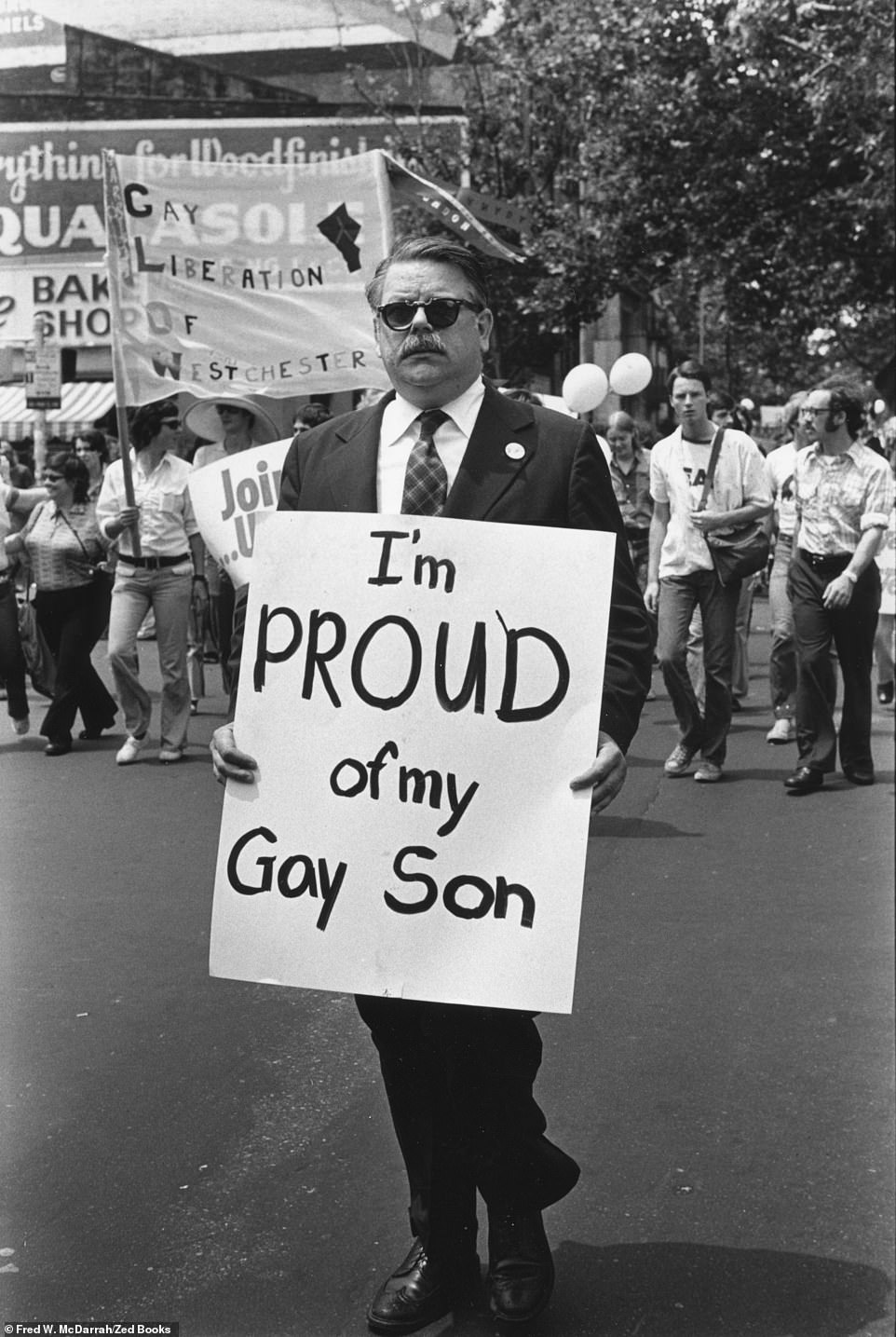And of course, LGBT+ rights were also pushed forward by allies, like the Parents and Friends of Lesbians and Gays group. One of its founders, Dick Ashworth – as seen above – would march in pride parades. Unfortunately, two of his sons, Eric and Tucker, would die of AIDS-related illnesses.