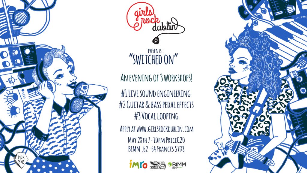 Girls Rock Dublin are delighted to be hosting SWITCHED ON, an evening of 3 interactive workshops sponsored by IMRO and run in partnership with Ernie Ball and BIMM.