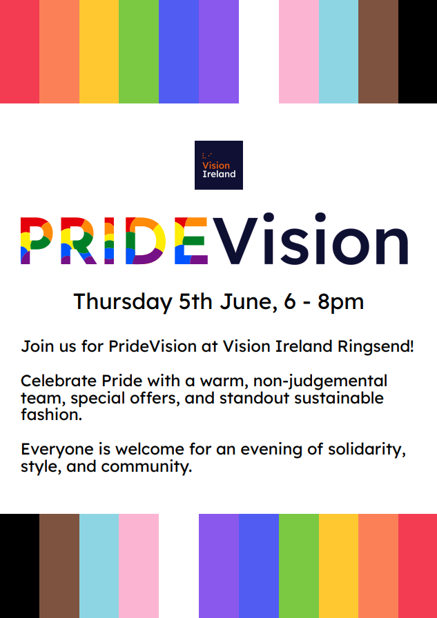 On June 5, Vision Ireland Ringsed is celebrating Pride by welcoming everyone to the shop for an evening of solidarity, style and community. Attendees will be able to shop for clothes in a warm and non-judgmental environment, with special offers and standout sustainable fashion available for customers.