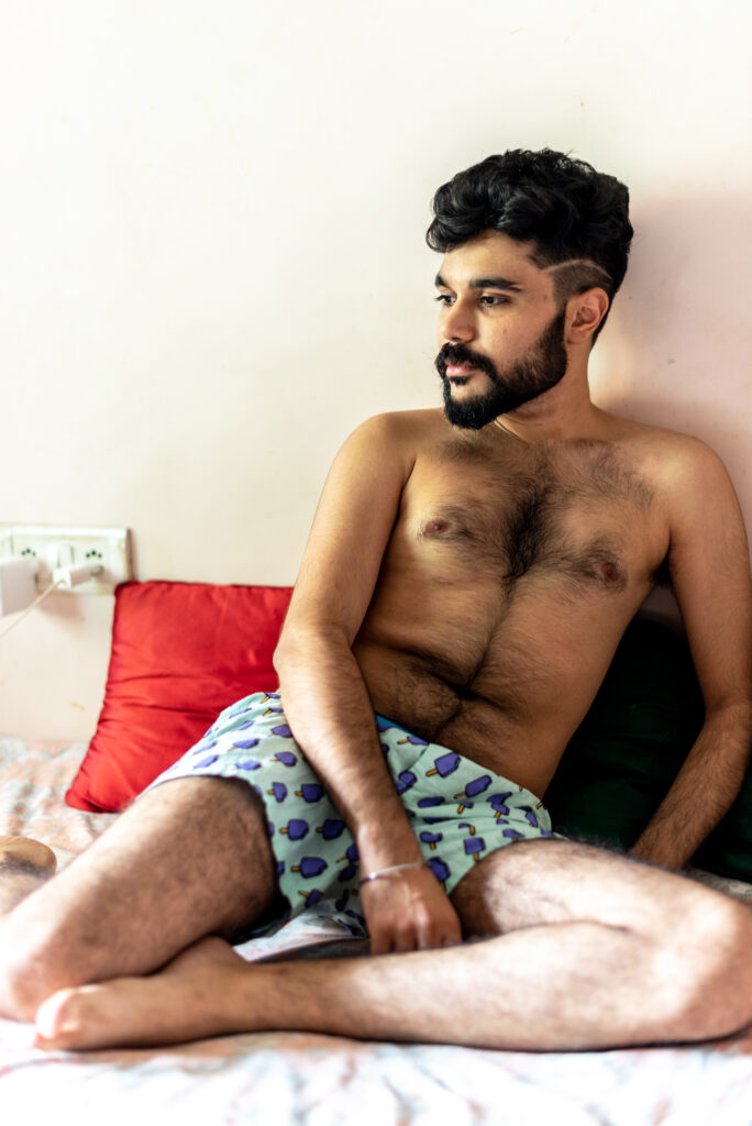 The images accompany personal stories penned by the models, with topics varying widely. Rehaan D contributes a series of imagined coming out letters to his grandmother; Saif G writes an ode to chasing true love despite the impending doom of falling for someone of a different caste; and Faraz A includes a scandalously vivid poem about his love for foreskin.