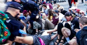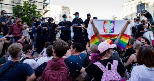 Back in Poland, a queer activist called Margot from Stop Bzdurom was arrested for attacking one of the vans that, to this day, drive around cities escorted by police to yell crude homophobic nonsense aiming to “stop paedophilia.” Along with her, dozens of people who gathered in solidarity, or just walked the nearby streets, were brutally assaulted and humiliated in police stations.