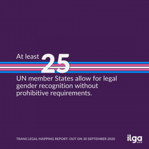 - At least 25 UN member States allow for legal gender recognition without prohibitive requirement.