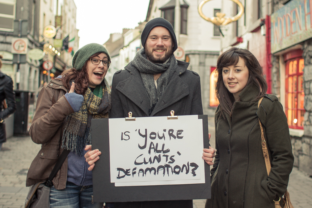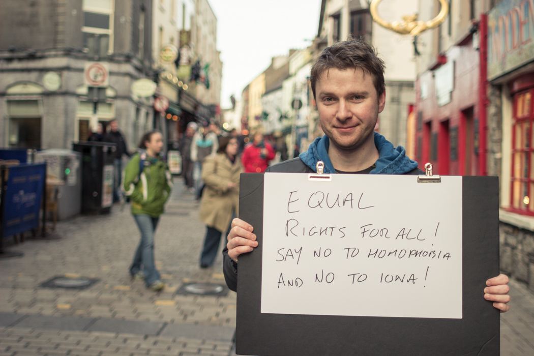 Chris Tierney of the blog Chrisdidthis.com took to the streets of Galway and asked the public to write a message to the Iona Institute and RTE on a placard and pose for a photo. This was the result…