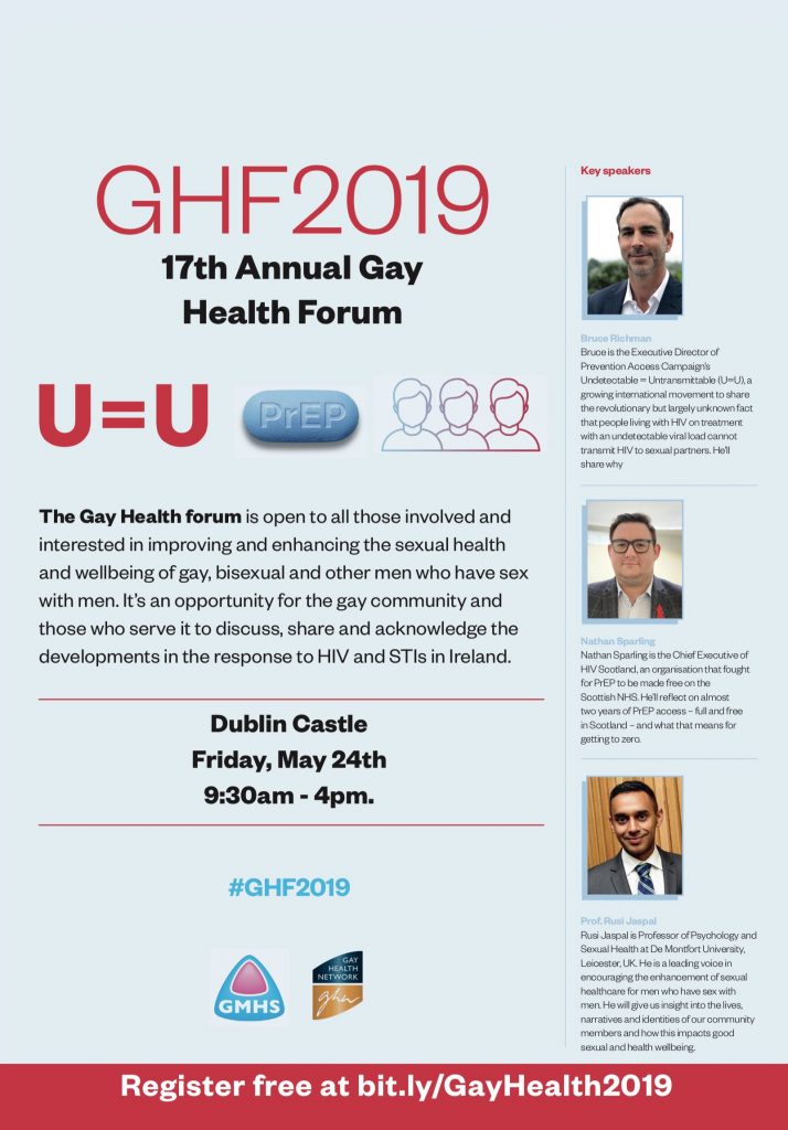 The seventeenth annual Gay Health Forum – an event organised by the Gay Men’s Health Service and the Gay Health Network, an Irish advocacy organisation working to protect gay and bisexual men’s health – will take place on Friday May 24th, from 9.30am to 4.00pm, at Dublin Castle.
