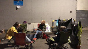 Each day is divided into four six-hour shifts, including a particularly tough midnight-to-six am one. At least two people must be on guard at all times to prevent KPMG’s lorries from entering through the loading bay and removing the stock inside the shop. As I pass through the ten-foot gates covered in posters about the workers, I see six picketers sitting in a circle of evenly-distanced camping chairs, shielded somewhat by a windbreaker. I wave to Sadhbh and introduce myself to the group as someone pulls up a chair for me.