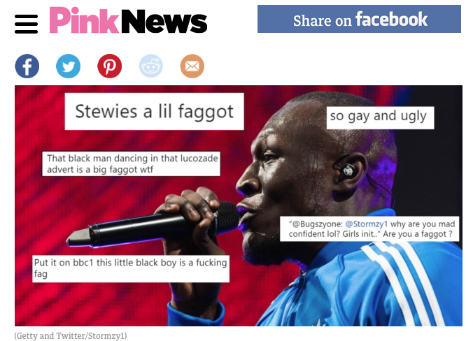 On November 21, PinkNews published a story stating that the award-winning hip-hop/ grime artist had issued an number of homophobic tweets (“at least 19”) between 2011-2014.