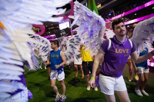 SQI President Brian Murphy shared about the group’s Rainbow Love Language theme this year. “It’s an ode to the LGBT+ pioneers who came before us,” he said. “While fighting for their rights they communicated to each other in really subtle and beautiful ways.”