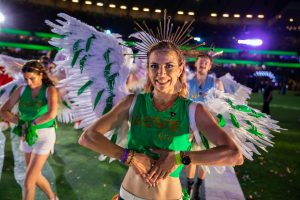 The group take their walk through the centre of the SCG ready to commence their dance routine. Cormac Henry shared his thoughts afterwards from this moment of his first Mardi Gras with SQI: “You’re nervous about the choreography, then you realise everyone watching is just super excited about the wings,” he said laughing.
