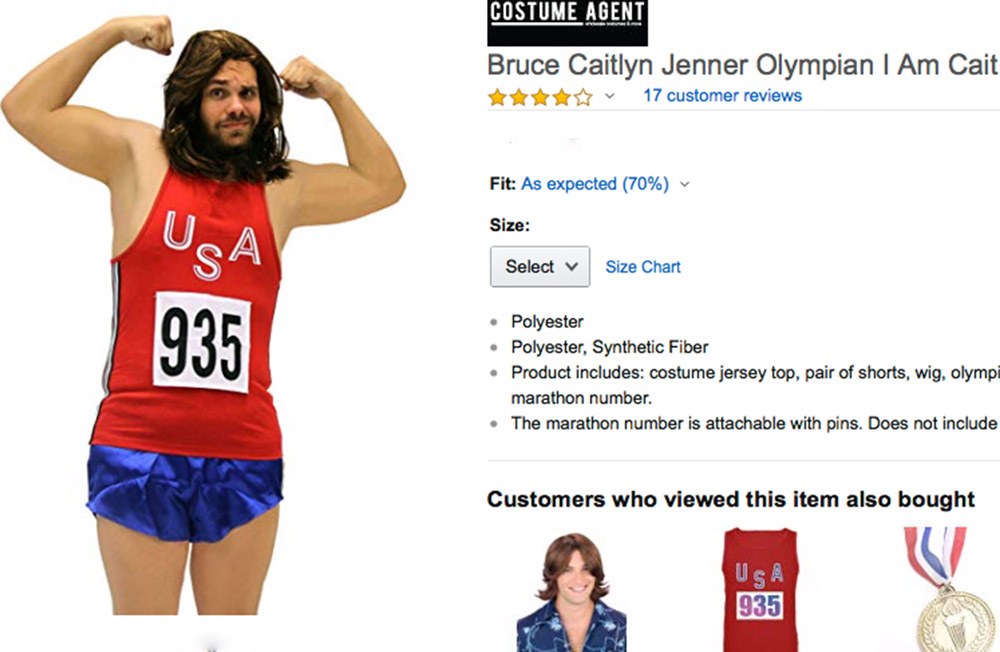 The product is promoted with the caption: “Show your love for Caitlyn Jenner with this awesome adult costume!”