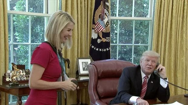 “One minute we were outside the window and the next minute I’m meeting the President of The United States,” Perry later told RTÉ. Ordinarily shooting is done outside the White House, explained Perry, but she and her crew were invited inside to witness Trump’s call.