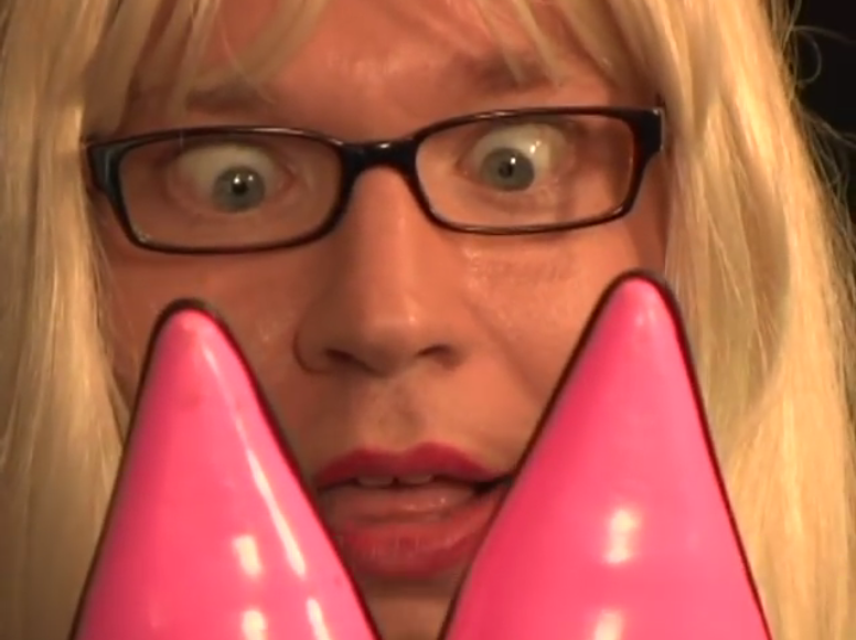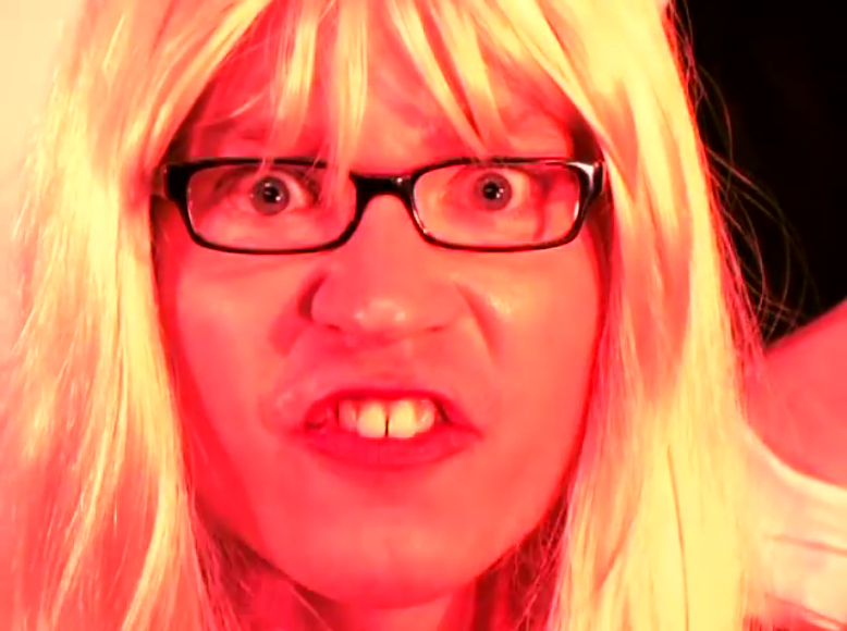 Kelly is an imagined character that Liam had originally perfomed live on stage at a comedy gig but no-one found it funny. It was a few years later when he dawned the blonde wig and glasses and decided to make the video.