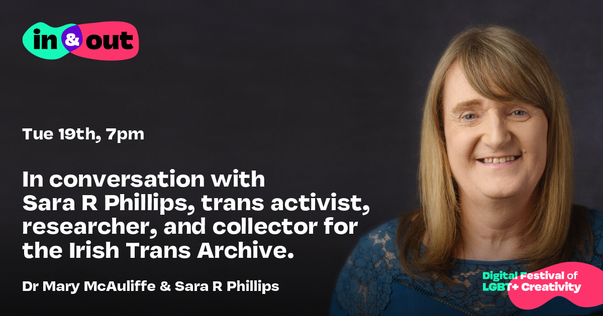 Kicking off week 7 of In And Out and continuing our series of conversations for GCN’s #InAndOut Digital Festival of LGBT+ Creativity, our host Dr Mary McAuliffe is joined by the trans activist and collector for the Irish Trans Archive, Sara R Phillips for a fascinating conversation about the history of trans activism in Ireland, campaigning for Gender Recognition and collecting for the Irish Trans Archive.