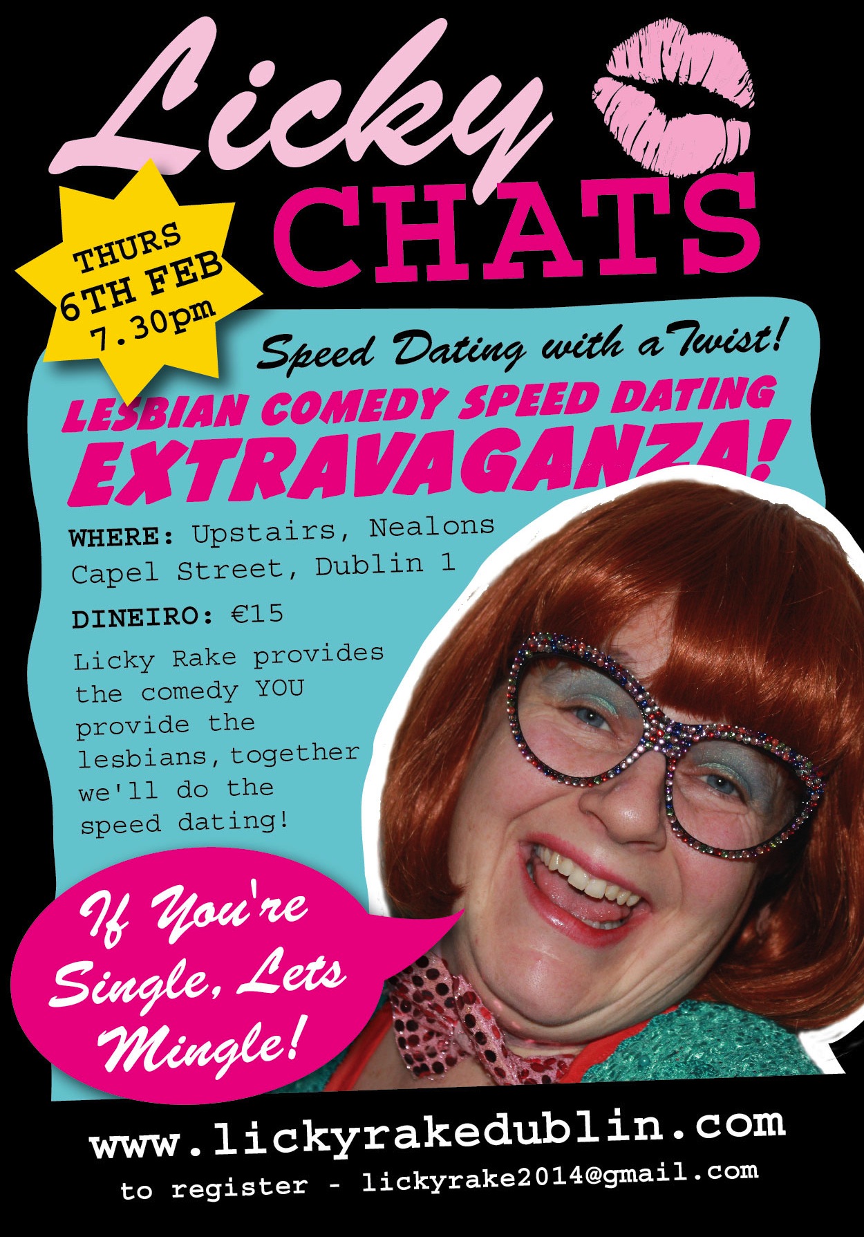All you have to do is email FREE LICKY to [email protected] . The first ten emails get free admission to Licky Rake’s comedy/speed dating extravaganza!