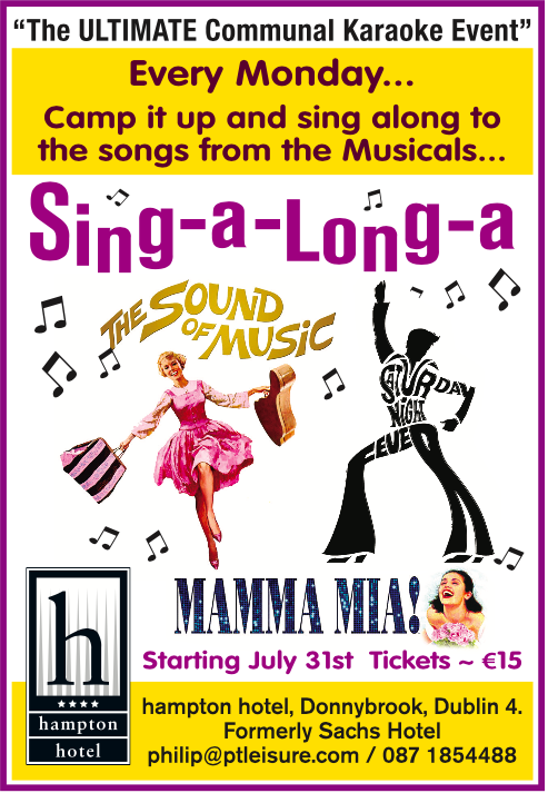 Starting on Monday July 31st and every Monday onwards join us in the “Sing-a-Long-a Lounge” where, with the words projected on to the screen, you can sing along to the greatest film musicals of all time, movies such as Sound of Music, Mama Mia, Rocky Horror Show, Saturday Night Fever etc.